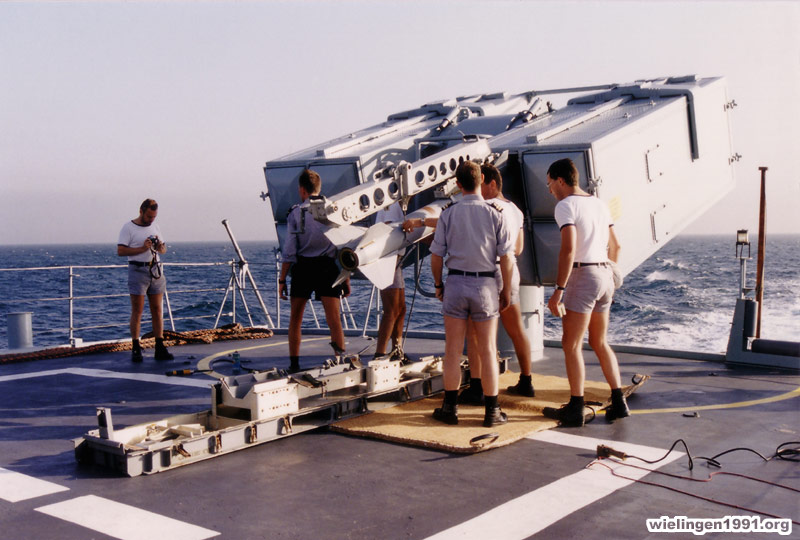 Des artilleurs au travail sur le lance-missiles NATO Sea Sparrow.