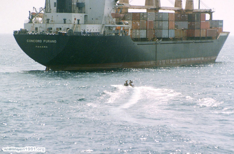 Le 1er zodiac approche du navire à inspecter. (