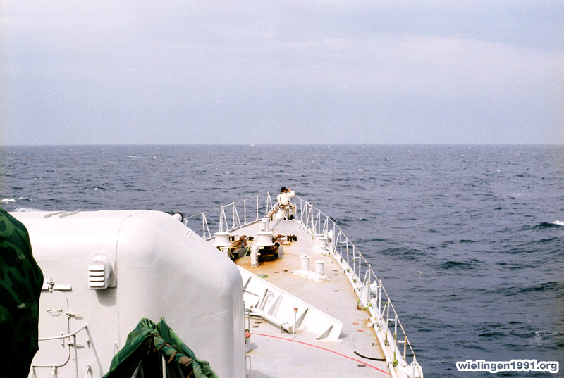 , à la proue une vigie anti-mine est de faction 24 heures sur 24.