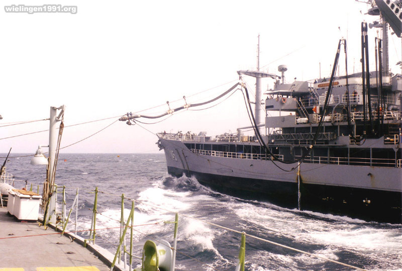 Ravitaillement d' eau à la mer (RAS/water) avec le pétrolier ravitailleur américain