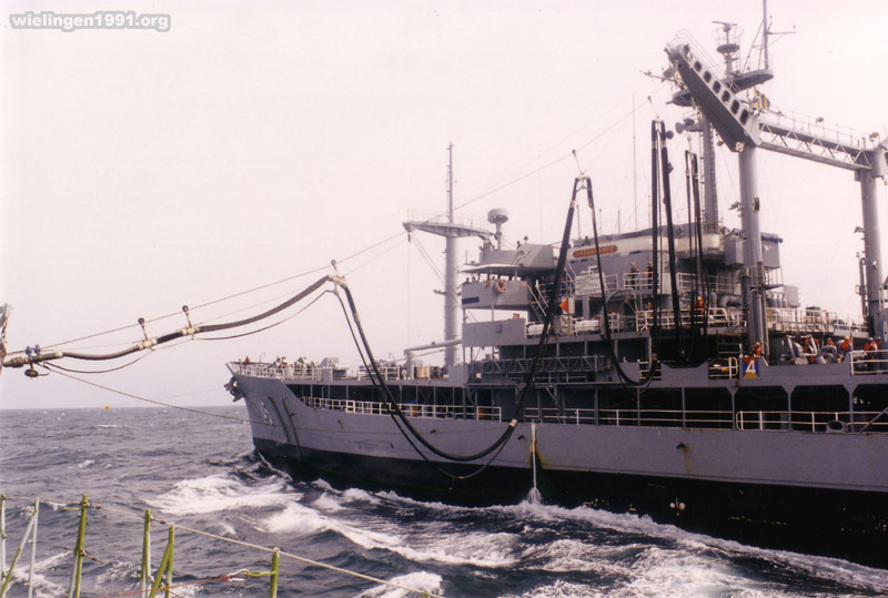 Ravitaillement d' eau à la mer (RAS/water) avec le pétrolier ravitailleur américain