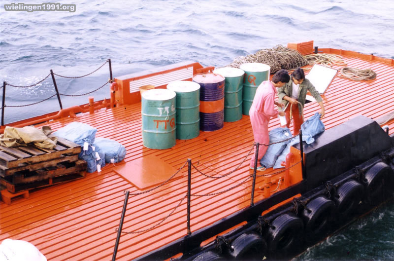 , transfert de courrier (RAS/mail) avec une vedette civile. (16 Mars 1991)