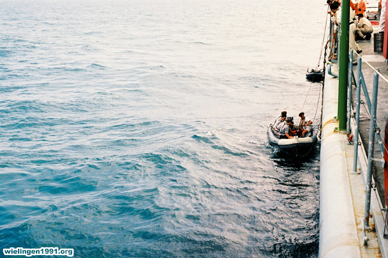 s'amarre au "Wielingen". (Golfe Persique - 22 Mars 1991)