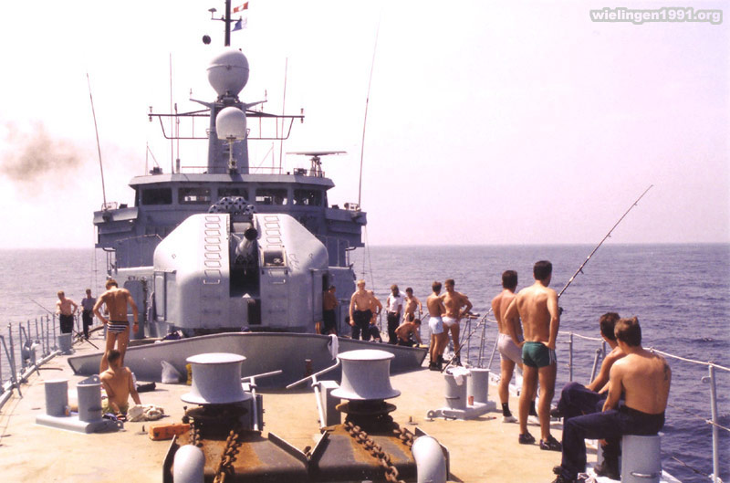 , détente au soleil pour ceux qui ne sont pas de quart. (25 Mars 1991)