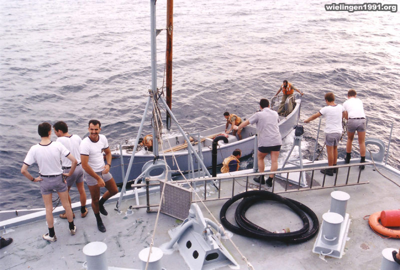 "RAS/boat" (transferts de courrier + bière) avec les cannots à moteur entre le