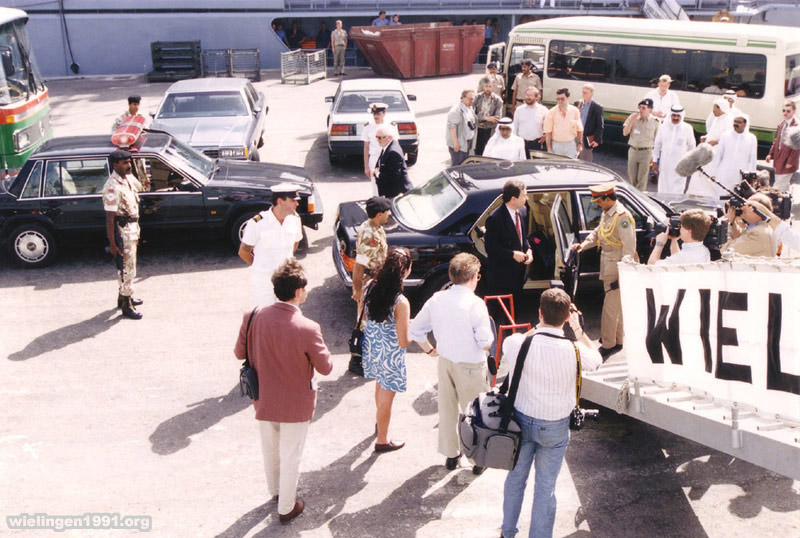 , arrivée du Ministre de la Défense Nationale, Monsieur Guy COEME. (Bahrein - 22 Avril 1991)