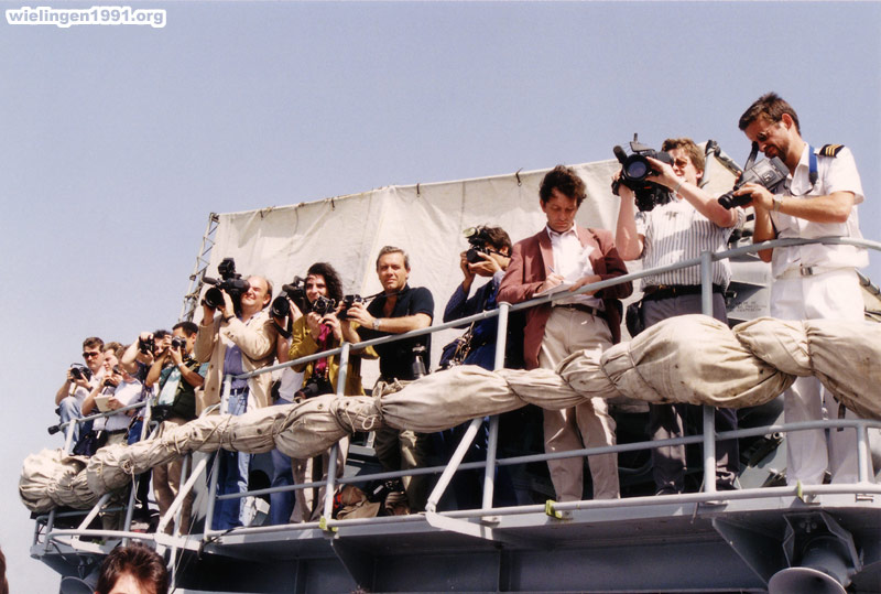 , la presse belge (écrite, radio et télé) durant le discours du Ministre de la Défense. (Bahrein - 22 Avril 1991)