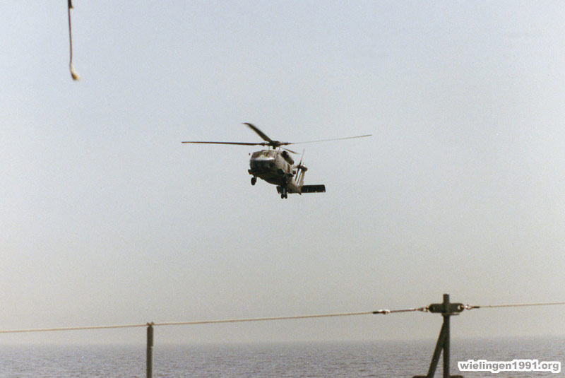 Un hélicoptère "Sea Hawk" de l'US Navy approche pour VERTREP. (