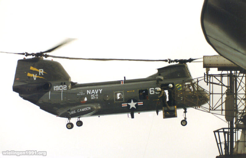VERTREP avec un hélicoptère "CH-46 Sea Knight" du ravitailleur