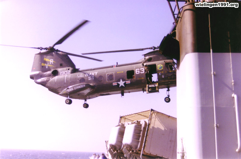 VERTREP avec un hélicoptère "CH-46 Sea Knight" du ravitailleur