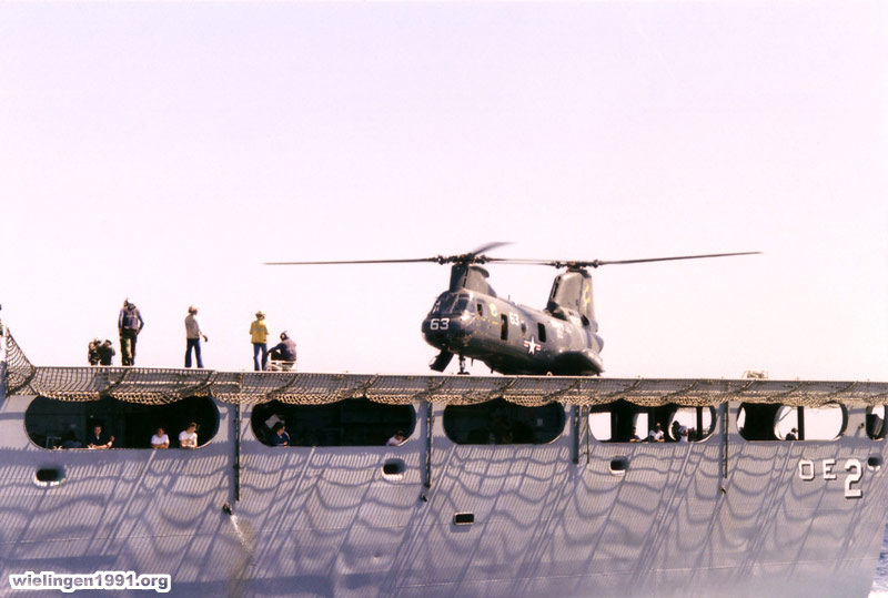 et un de ses hélicoptères "CH-46 Sea Knight". (Golfe Persique - 05 Mai 1991)
