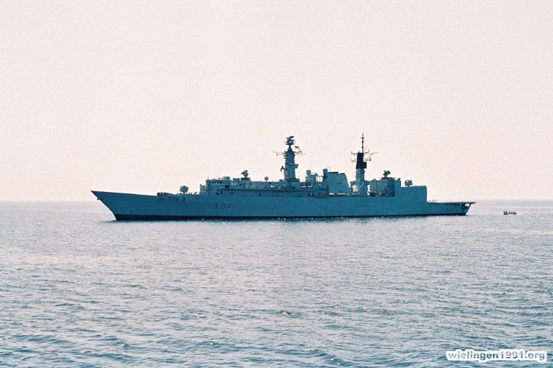 Le cannot à moteur du "Wielingen" approche de la frégate britannique