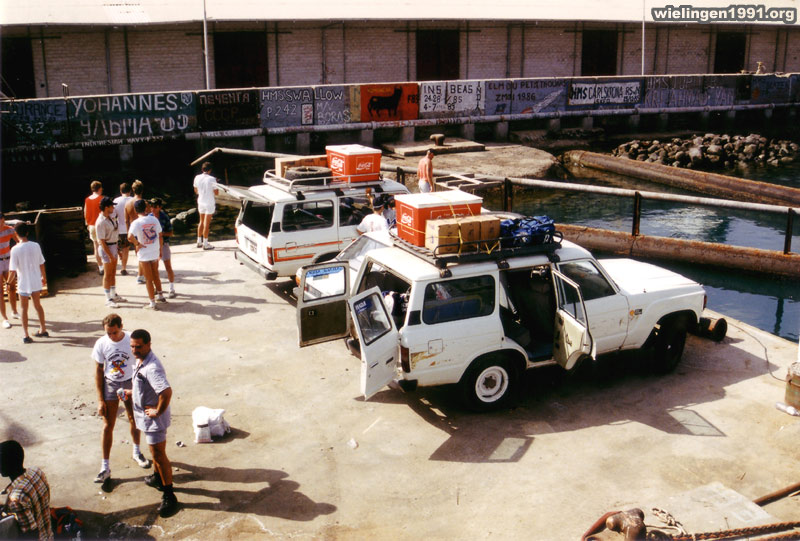 Une partie de l 'équipage du F910 se prépare pour faire un Rallye 4 x 4 à travers