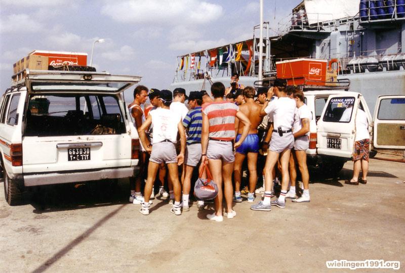 Une partie de l 'équipage du F910 se prépare pour faire un Rallye 4 x 4 à travers