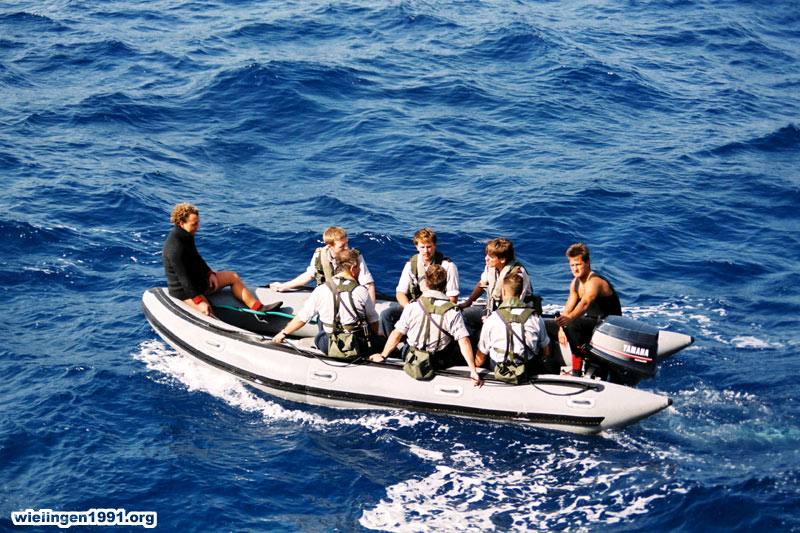 Les 2 zodiacs du "Boarding Team" poussent vers le navire suspect pour le visiter. (nord