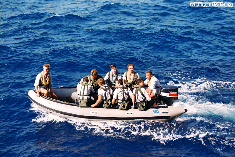 La visite du navire suspect peut durer plusieurs heures et si tout est normal alors le navire est autorisé à poursuivre sa route. (26 Mai 1991)