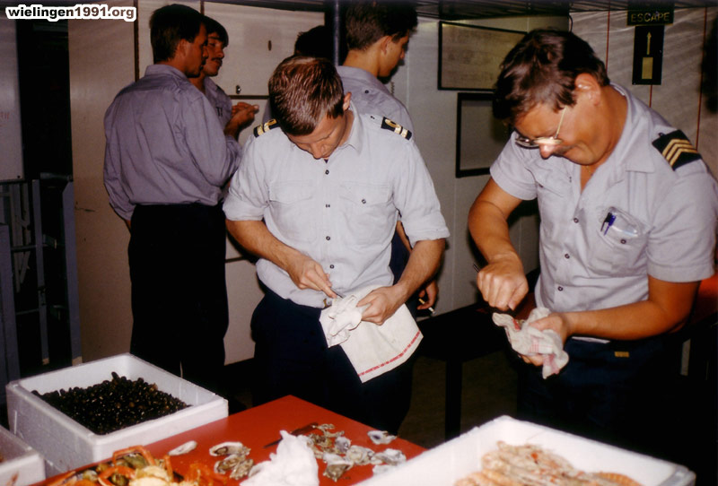Préparation des plateaux de fruits de mer pour les 160 membres d'équipage du "Wielingen" ! (