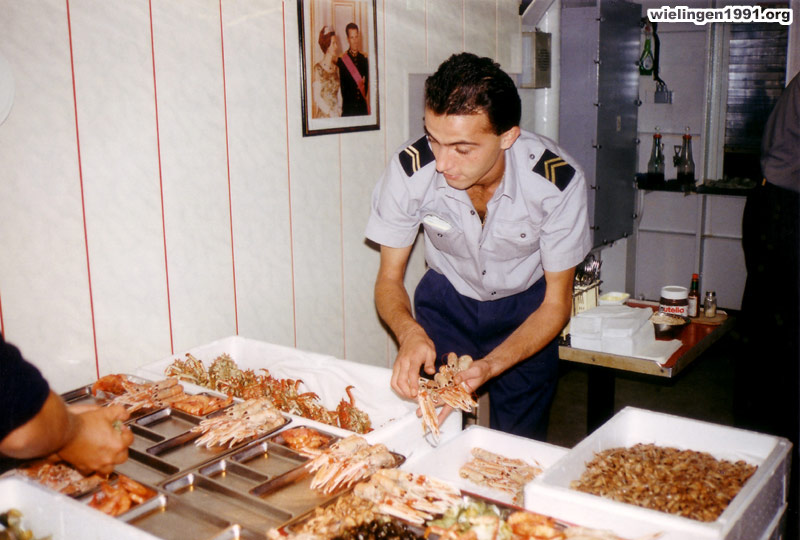 Préparation des plateaux de fruits de mer pour les 160 membres d'équipage du "Wielingen" ! (