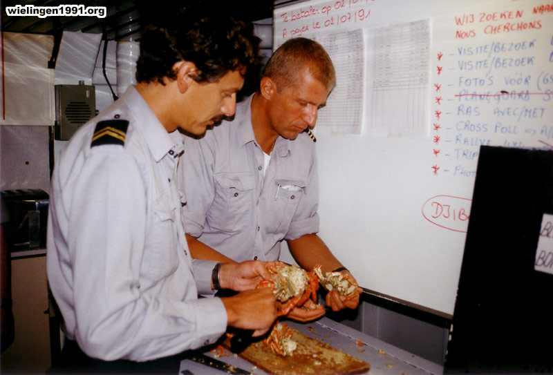 Préparation des plateaux de fruits de mer pour les 160 membres d'équipage du "Wielingen" ! (