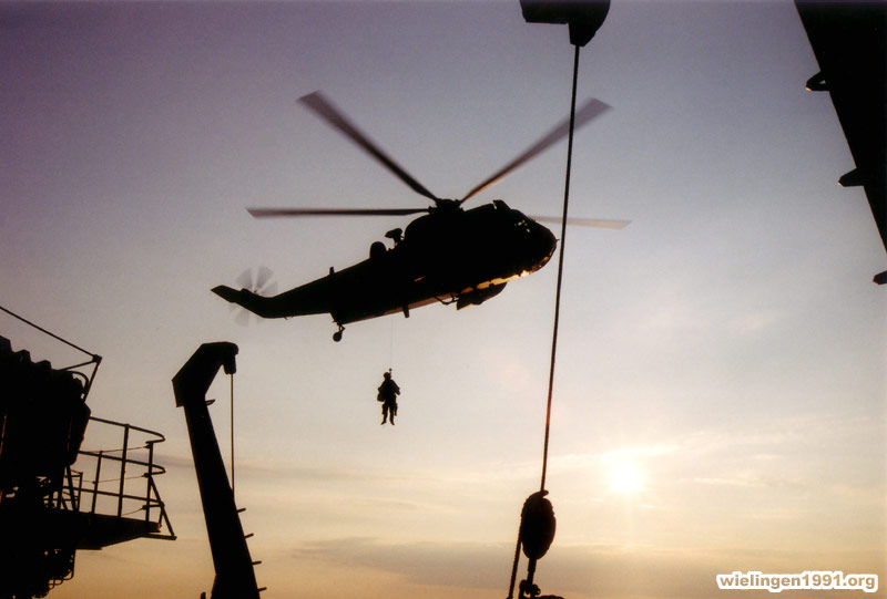 VERTREP (Vertical Replenishment) avec un "Sea King" de la base de Coxyde. (