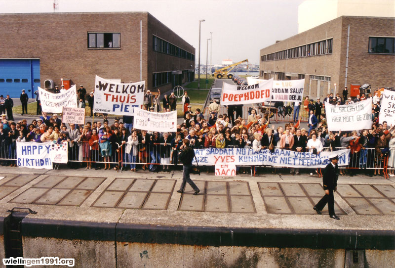 , les proches, les amis et la fanfare de la marine accueillent le "Wielingen". ( 17 Juin 1991)
