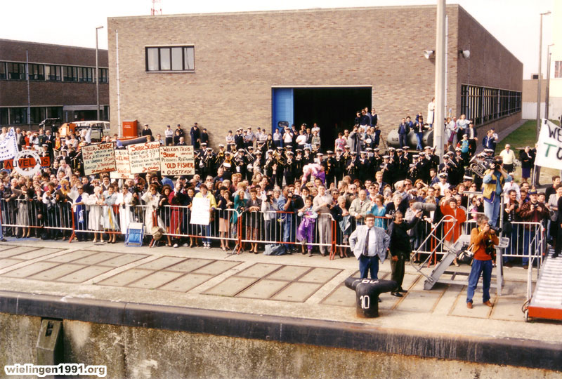 , les proches, les amis et la fanfare de la marine accueillent le "Wielingen". ( 17 Juin 1991)