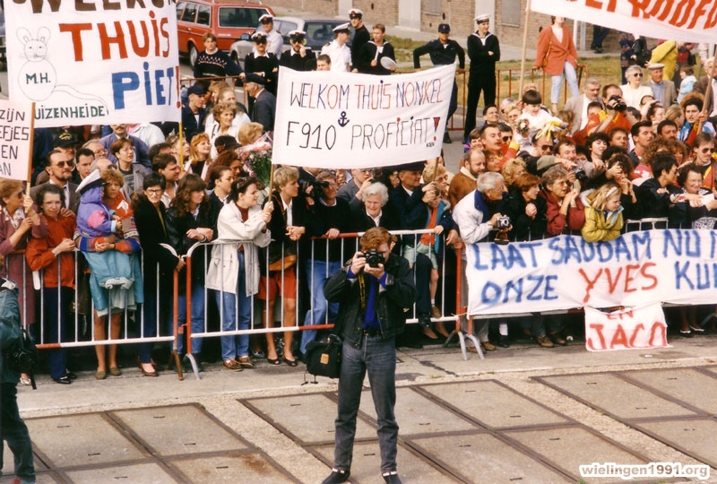 , les proches, les amis et la fanfare de la marine accueillent le "Wielingen". ( 17 Juin 1991)