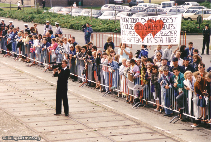 , les proches, les amis et la fanfare de la marine accueillent le "Wielingen". ( 17 Juin 1991)
