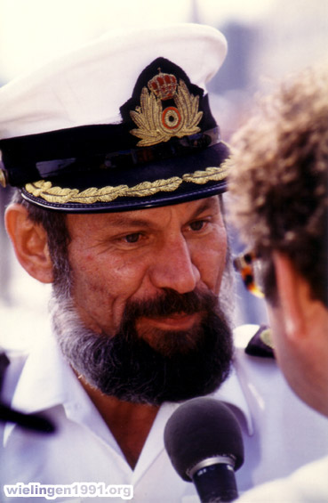 La mission du "Wielingen" est terminée et le Commandant du F910 est interviewé par la presse. (