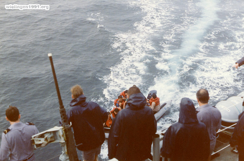 Les zodiacs amènent les naufragés vers le Wielingen. (