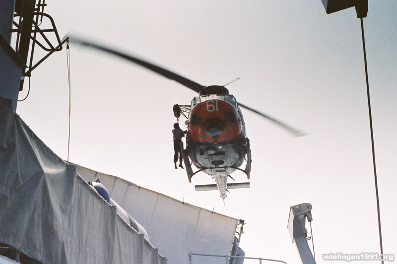 VERTREP (Vertical Replenishment) met helikopter "Agusta-Bell AB212" van de Italiaanse destroyer