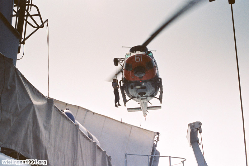 VERTREP (Vertical Replenishment) met helikopter "Agusta-Bell AB212" van de Italiaanse destroyer